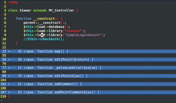 К примеру, фолдинг функции приводит к сворачиванию всего кода функции в одну строку таким образом, что будет видно только название функции.