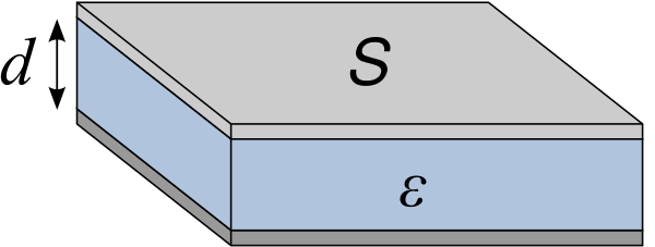 Рассмотрим плоский конденсатор, состоящий из двух параллельных пластин, между которыми создаётся однородное электрическое поле с напряжённостью . Разность потенциалов между пластинами связана с напряжённостью поля и расстоянием между ними: