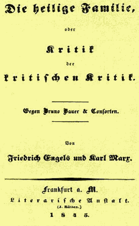 - Die heilige Familie, oder Kritik der krititschen Kritik. Gegen Bruno Bauer & Consorten. In: Андреас, Берт: Karl Marx / Friedrich Engels. Das Ende der klassischen deutschen Philosophie. Bibliographie. Trier 1983, S. 73–86. (Schriften aus dem Karl-Marx-Haus Nr. 28)