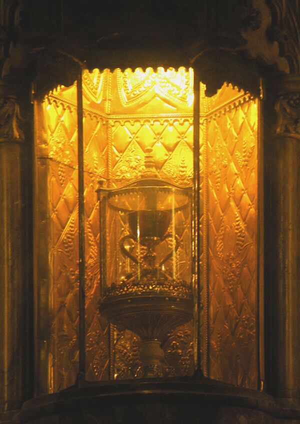 Однако среди орудий Страстей, которые выставлялись в различных храмах Европы, отсутствовала чаша, из которой вкушал Иисус на тайной вечере. Это обстоятельство подстегнуло толки и предания о её местонахождении. В противовес Парижу, который «монополизировал» многие святыни христианства, часть современной Франции, принадлежавшая английской короне, выдвинула легенду о чаше, которая скрыта где-то на просторах Британии.