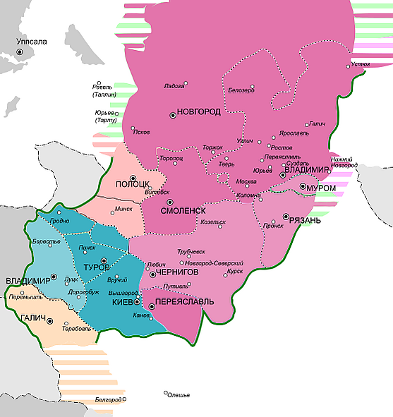 В 1096—1097 годах завершилась ожесточённая борьба на востоке Руси между Олегом Святославичем и Владимиром Мономахом, за которого сражались новгородцы во главе с его старшим сыном Мстиславом и половцы. Любечский съезд в 1097 году вернул Святославичам наследство их отца и закрепил остальные земли за их текущими владельцами. Таким образом, непосредственная власть Святополка продолжала ограничиваться Киевом и Туровом.
