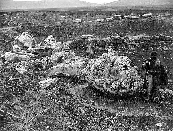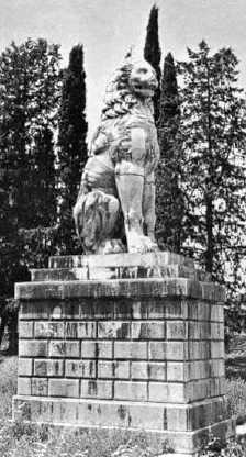 В 1818 г. близ Херонеи обнаружили обломки гигантского мраморного льва, возведённого Фивами на месте героической гибели «Священного отряда». Об этом льве упомянул Павсаний[3] в своих путевых записках II века, сказав, что возведён он был над братской могилой фиванцев, героически павших в борьбе против царя Филиппа. В 1879 г. раскопки продолжились, позже там нашли воинское захоронение с останками 254 человек, предположительно бойцов «Священного отряда». В 1902 г. льва восстановили на новый пьедестал.