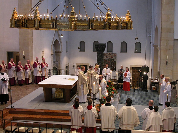 В Католической церкви также существует три степени священства — диакон, пресвитер и епископ, и также правом посвящать во все три степени обладает лишь епископ. Основной обряд этого таинства для всех трёх степеней состоит в возложении рук епископом (собором епископов) на посвящаемого и в специальной посвятительной молитве о ниспослании Духа Святаго и даровании Его даров, соответствующих служению, на которое рукополагается кандидат[13]. Перед совершением таинства посвящаемый простирается ниц[14].