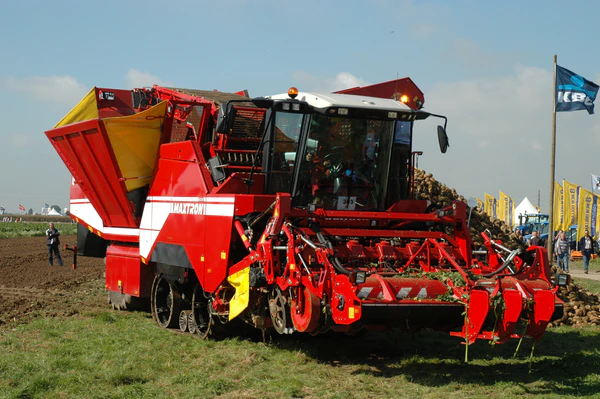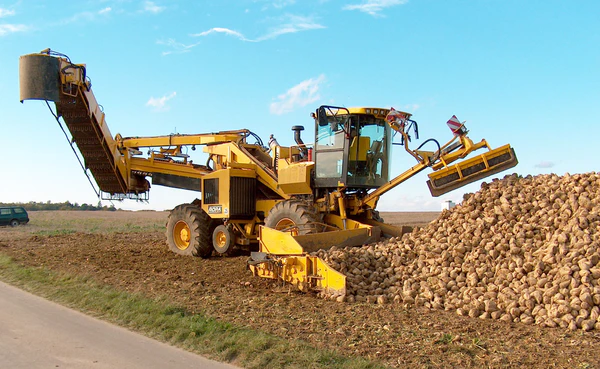 - Корнеуборочная машина собирает корнеплоды и грузит их в транспортное средство. Возможен также сбор корней в бункер или укладка их в валок. Работает в комплексе с ботвоуборочной машиной, а также со свёклопогрузчиком, если корнеплоды уложены в валок.