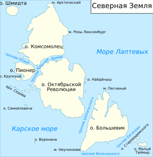 Се́верная Земля́ (до 1926 года — Земля́ Импера́тора Никола́я II) — архипелаг в Северном Ледовитом океане к северу от полуострова Таймыр на границе Карского моря и моря Лаптевых. Административно входит в состав Таймырского (Долгано-Ненецкого) муниципального района Красноярского края России. Состоит из 4 крупных островов (Октябрьской Революции, Комсомолец, Большевик, Пионер) и мелких (Шмидта, Старокадомского, Крупской, Малый Таймыр и др.)[1].