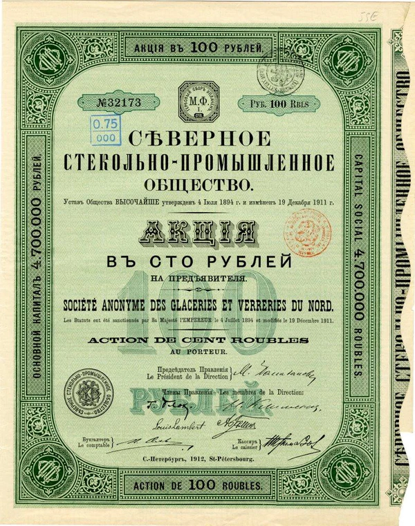 В 1918 году декретом Совета Народных Комиссаров «О национализации крупнейших предприятий ряда отраслей промышленности…» Северное стекольно-промышленное общество, имевшее капитал больше 500 тысяч рублей, было национализировано[3][1].