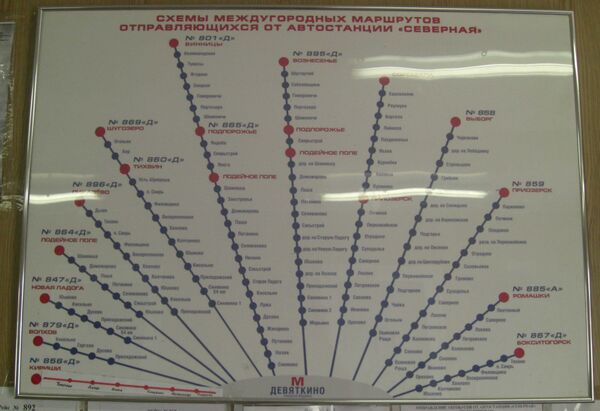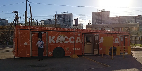 «Гражданский проспект». Она представляла собой небольшой фургончик с двумя кассами, а за ним располагался биотуалет. От автостанции отправлялись и прибывали автобусы следующих маршрутов: