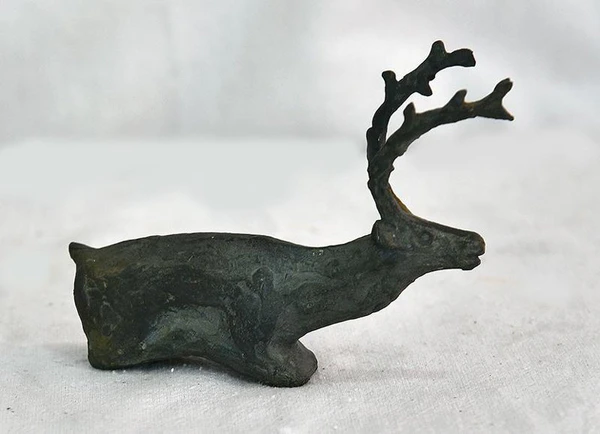 Скульптура изображает лежащего оленя с подогнутыми под себя ногами. Шея вытянута вперёд, а голова слегка повёрнута вправо. Два больших рога загнуты вперёд, на каждом из них по три небольших отростка. Глаза обозначены круглыми впадинами. Передние и задние ноги выполнены схематично. Размер произведения составляет 10×9×3 см.