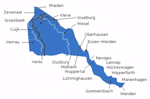 - Клевско-везельский диалект и диалекты Рурской области (Мюльхайм-на-Руре, Дуйсбург, Оберхаузен);