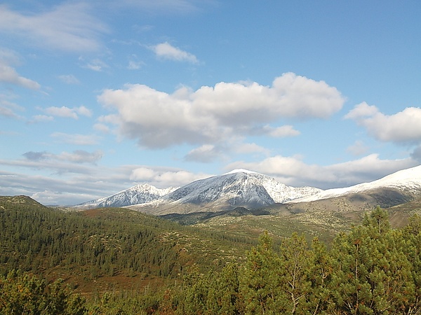 Склоны гор покрыты лиственничной тайгой, сменяющейся горной тундрой.