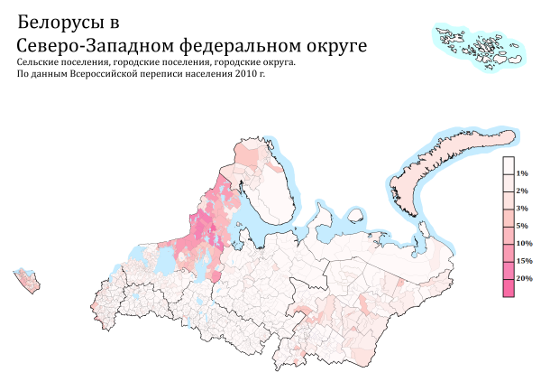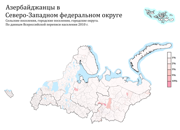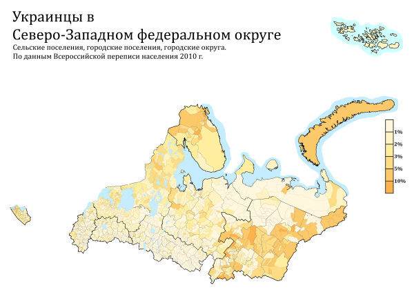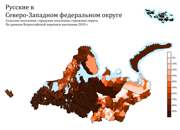 Расселение отдельных народов и народностей в СЗФО по городским и сельским поселениям в %, перепись 2010 года.