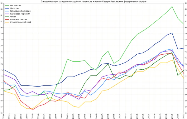 | Ожидаемая продолжительность жизни при рождении (число лет) | ||||