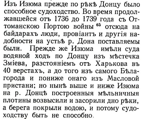 Судоходство на Слобожанщине (до Змиёва, расположенного гораздо ниже Белгорода и Масловой Пристани) было возможно ещё до середины XVIII века. Однако позже вследствие обмеления рек бассейна Донца и самого Северского Донца, а также постройки плотин и запруд судоходство стало невозможным. Во время русско-турецкой войны 1735—1739 годов Северский Донец ещё был судоходен и активно использовался как основной канал снабжения воюющих частей продовольствием из Малороссии, однако в 1788 году судоходство уже было невозможно: русло реки было перегорожено сотнями водяных мельниц[26].