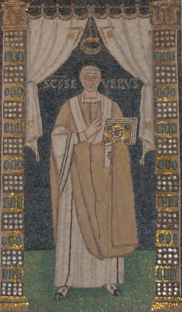В базилике Сан-Витале в Равенне имеется мозаичное изображение святого Севера.