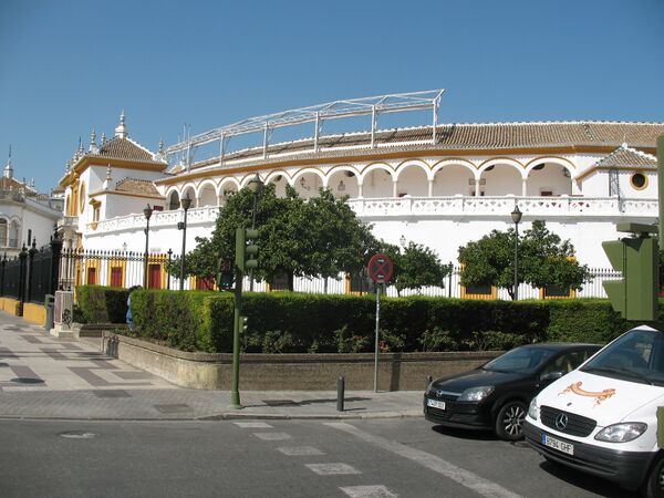 Севильская арена для корриды Маэстранса представляет собой овальный амфитеатр, в котором умещаются 18 тысяч человек, и является второй по величине ареной Испании после мадридской.