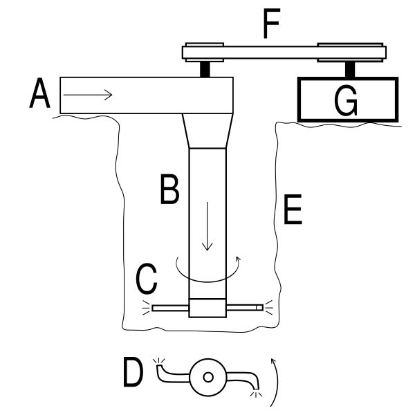 Расположенное в горизонтальной плоскости колесо без обода, у которого спицы заменены трубками с отогнутыми концами так, что вытекающая из них вода приводит сегнерово колесо во вращение. Изобретено Иоганном Сегнером.