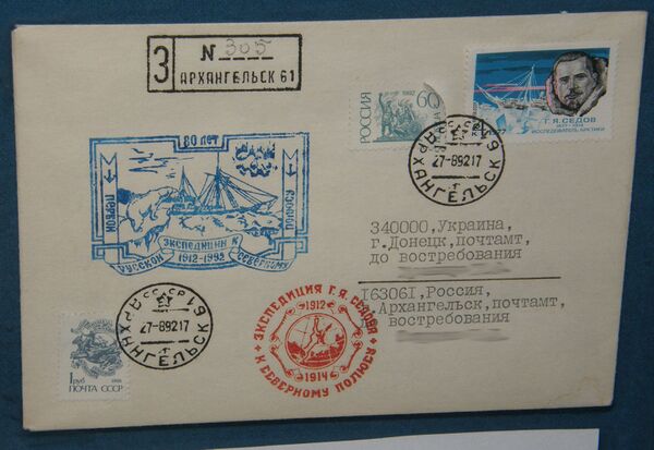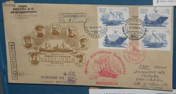 Сохранились почтовые конверты Комитета для снаряжения экспедиций к Северному полюсу и по исследованию русских полярных стран, который в 1912 году собирал средства на снаряжение экспедиции.