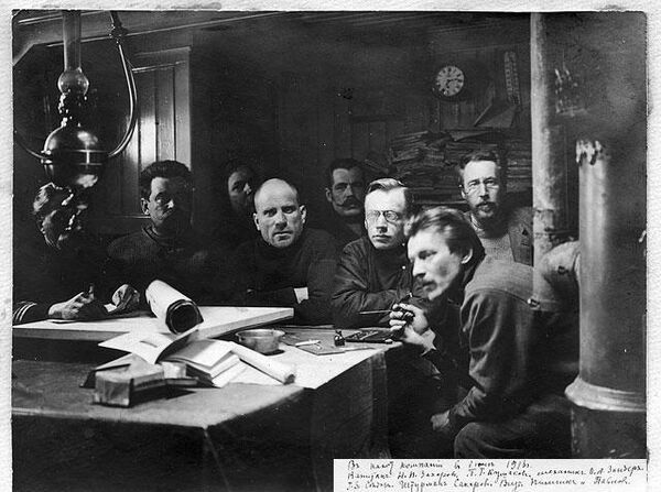 - Владимир Юльевич Визе и Михаил Алексеевич Павлов — научный штат экспедиции, недавние выпускники Петербургского университета (сокурсники и к тому же однокашники по гимназии).