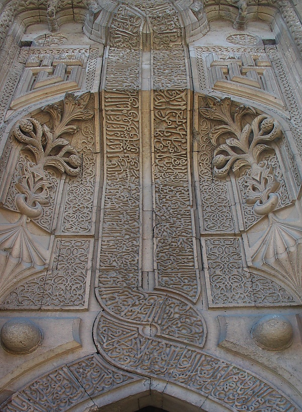 Исламские культуры использовали фигурные изображения в своём искусстве, реже в религиозных контекстах. Анатолийские сельджукиды и соседние Артукиды были беспрецедентно активны в использовании этих мотивов и применяли их даже в религиозном искусстве и архитектуре[34][35]. Одним из основных способов изображения фигур в сельджукской архитектуре были каменные рельефы. Сельджуки изображали эти фигуры на дверных проёмах — самых заметных местах. Эта практика восходит к христианско-армянской традиции и была перенята сельджуками после завоевания региона. Этот вид каменной кладки использовался на культовых и религиозных зданиях, а также на укреплениях, таких как городские стены, часто на дверных проёмах, воротах и входах[34]. Эта традиция фигурных изображений в конечном итоге угасла, когда регион оказался под властью ильханидов[35].