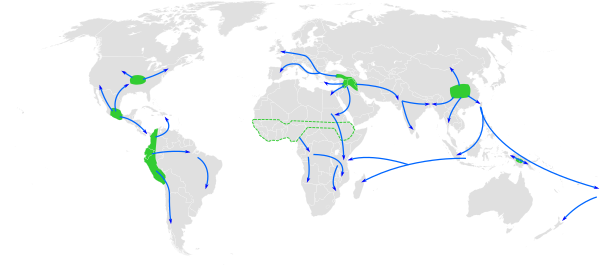 - ↑ Diamond, J.; Bellwood, P. (2003). “Farmers and Their Languages: The First Expansions”. Science. 300 (5619): 597—603. Bibcode:2003Sci...300..597D. CiteSeerX 10.1.1.1013.4523. DOI:10.1126/science.1078208. PMID 12714734. S2CID 13350469.