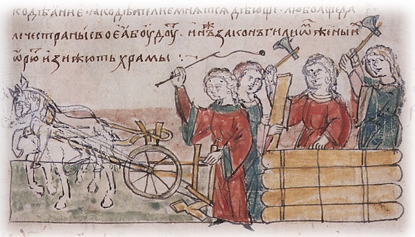 И стали совещаться, и начала говорить дружина Святополкова, что «не время ныне, весной, воевать: погубим смердов и пахоту их». И сказал Владимир: «Дивно мне, дружина, что лошадей жалеете, которыми пашут, а почему не подумаете о том, что вот начнет пахать смерд, и, приехав, половец поразит смерда стрелою, а лошадь его заберет, а в село его приехав, захватит жену его и детей, и все имущество его возьмет? Лошадь его вы жалеете, а самого почему не жалеете?»[4].