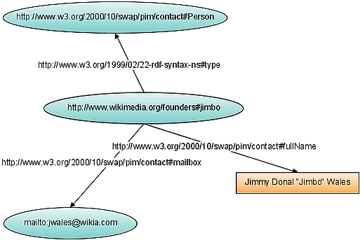 URI — унифицированный идентификатор ресурса или адрес, используемый для указания ссылок на какой-либо объект (например, веб-страницу, файл или ящик электронной почты). URI используются для именования объектов. Каждый объект глобальной семантической сети имеет уникальный URI. URI однозначно называет некоторый объект. Отдельные URI создают не только для страниц, но и для объектов реального мира (людей, городов, художественных произведений и так далее), и даже для абстрактных понятий (например, «имя», «должность», «цвет»). Благодаря уникальности URI одни и те же предметы можно называть одинаково в разных местах семантической паутины. Используя URI, можно собирать информацию об одном предмете из разных мест. Рекомендуется включать в адрес URI название одного из протоколов Всемирной паутины (HTTP или HTTPS). То есть адрес URI рекомендуют начинать с «http://» или «https://»). Такой адрес можно одновременно использовать как адрес URI и как адрес веб-страницы (URL). На веб-страницах, адреса URL которых совпадают с URI, W3C рекомендует размещать описание предмета. Описание желательно предоставлять в двух форматах[5]: