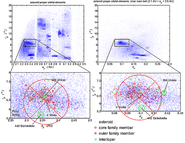Спектроскопический анализ показал, что не все астероиды, входящие в это семейство, являются обломками, выброшенными из Весты. Судя по спектральным данным, они не относятся ни к астероидам класса V, ни к астероидам класса J, но, тем не менее, имеют схожие с семейством параметры орбит. К ним относятся такие астероиды как: