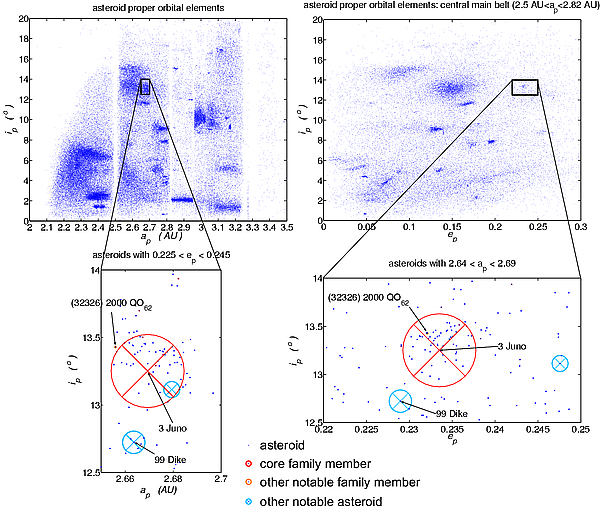Данные численного статистического HCM анализа (Zappalа 1995) позволили выделить несколько наиболее вероятных членов этого семейства, а также выявить основной диапазон орбитальных элементов этого семейства.
