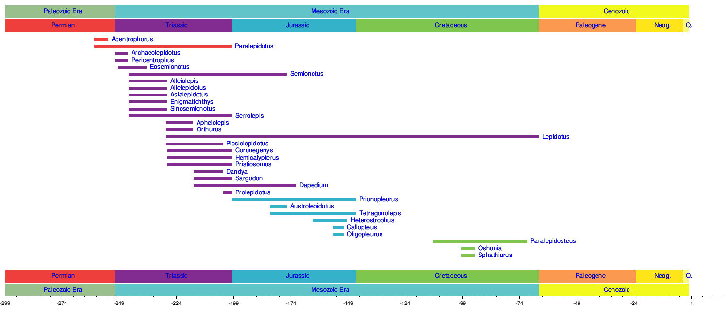 | Semionotiformes Arambourg & Bertini, 1958 sensu López-Arbarello, 2012 | |