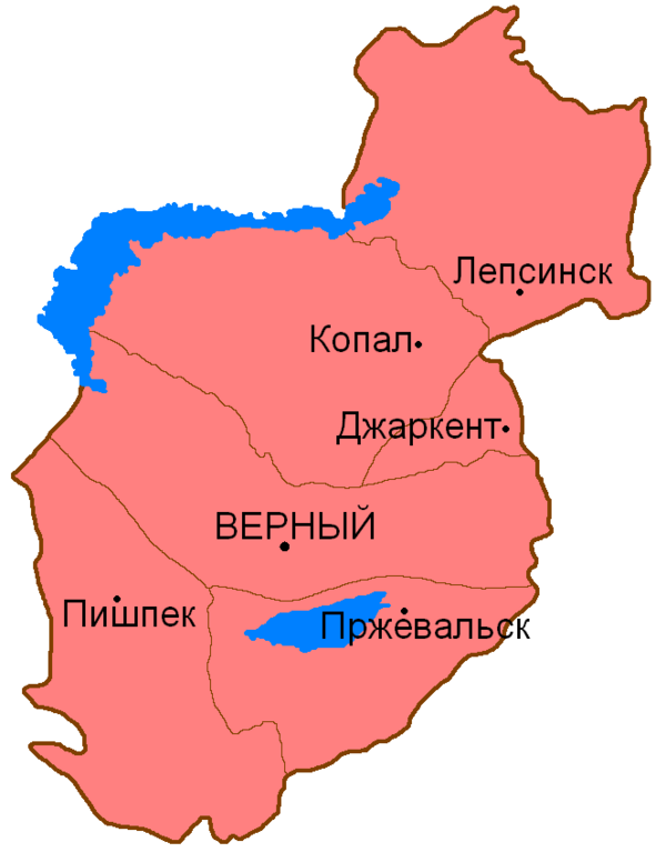 Одними из первых поселений казаков в Семиречье стали станицы — Ауягузская (Сергиопольская), основанная в 1847 году и Капальская, основанная в 1848 году есаулом Абакумовым. Капальская станица стала важным русским плацдармом в Русско-кокандской войне, закрепившей Семиречье за Россией. В 1854 году было основано укрепление Верное, а в 1855 году — станица Верхне-Лепсинская. Южная часть Семиречья называлась Заилийским краем.