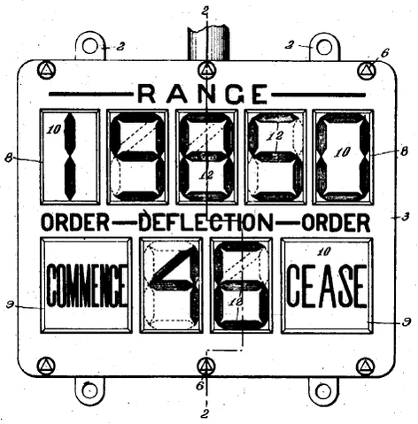 Сегментный индикатор был запатентован в 1910 году (U.S. Patent 974 943) Фрэнком Вудом. Эта реализация была восьмисегментной — был дополнительный косой сегмент для отображения четвёрки. Патент был практически забыт — вплоть до 1960-х годов радиолюбителям приходилось применять для отображения цифр знаковые индикаторы тлеющего разряда или просто десять лампочек.