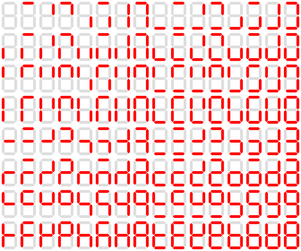 Кроме десяти цифр, семисегментные индикаторы способны отображать буквы. Но лишь немногие из букв имеют интуитивно понятное семисегментное представление.