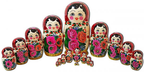 Традиционно семёновская матрёшка — многоместная и может состоять из 15-20 различающихся по окраске фигурок[2].
