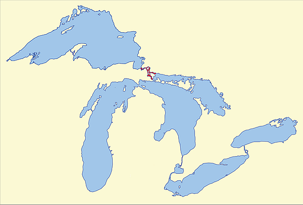 | Водная система | Гурон → Сент-Клэр → Сент-Клэр → Детройт → Эри → Ниагара → Онтарио → река Святого Лаврентия → Атлантический океан |
