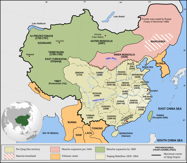 В 1683 году Тайвань был присоединен к маньчжурской Цинской империи, после чего началось массовое переселение на остров китайцев из прибрежных материковых провинций на остров. Основу ханьского населения сложили две общины — холо и хакка, обладающие ярко выраженной этно-культурной и языковой самобытностью. Аборигенные племена фактически находились вне административного контроля Цинской империи.