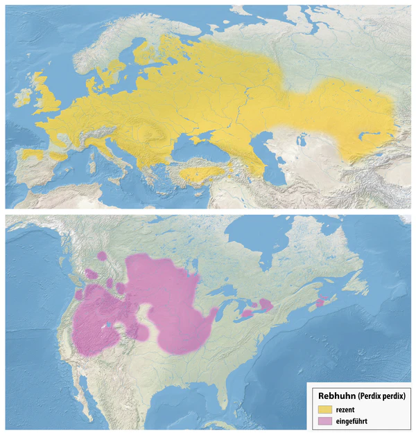 - Perdix p. sphagnetorum — болота на северо-востоке Нидерландов и северо-западе Германии.