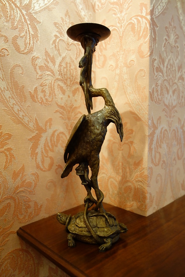 Образ цапли часто встречается в традиционном китайском изобразительном искусстве и литературе. Одной из причин такой популярности является то, что, согласно традиции, крик цапли напоминает китайское слово «путь»; таким образом, цапля ассоциируется с чем-то продолжающимся, развивающимся. Изображение цапли и лотоса символизирует пожелание постоянного успеха в жизни[60]. Цапля стала в китайской литературе персонажем разнообразных аллегорий и метафор. Например, в классическом романе «Речные заводи», содержится такое четверостишие[61]: