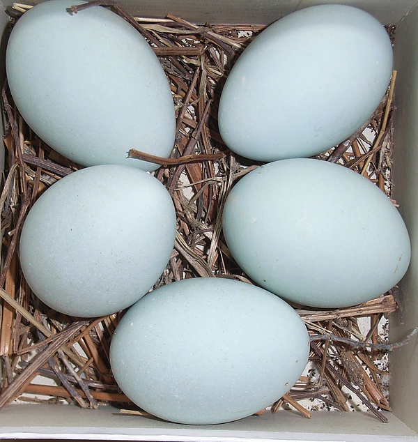 Количество яиц в кладке от 3 до 9, чаще всего 5 либо 6[43]. Размер яиц в среднем 59,8 × 43,7 мм, как крайние значения приводится 55,3—60,4 × 41,0—46,5 мм. Цвет яиц зеленовато-голубой, часто с белыми известковыми мазками. Интересно, что яйца цапли далеко не всегда имеют обычную «яйцевидную» форму, они нередко бывают в равной степени заострены с обоих концов. Скорлупа свежеснесённых яиц лишена блеска, но если яйца уже чуть насижены, скорлупа приобретает слабый блеск. Откладка яиц происходит с промежутком в двое суток, причём самка приступает к насиживанию сразу после откладки первого яйца. Поэтому выведшийся из первого яйца птенец всегда значительно крупнее последующих, и тем более последнего[44][33].