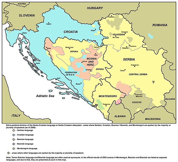 По наблюдениям Вука Стефановича Караджича, в начале XIX века «сербски ieзик» имеет широкое распространение на территории Герцеговины, Боснии, Сербии, Славонии, Хорватии, Черногории, Далмации[5].