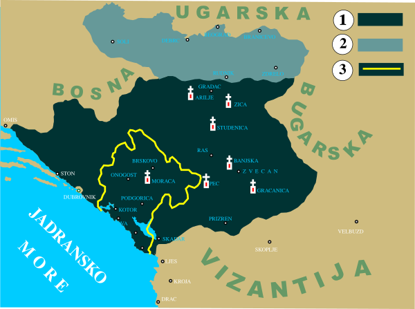 После 1180 года вся территория нынешней Черногории перешла под власть великого князя Стефана Немани, основателя династии Неманичей. Район Зета, ранее известный как Дукля, стал коронной землёй объединённого сербского государства[7]. Он был передан Вукану Неманичу (ум. 1208), старшему сыну Стефана Немани, а затем наследному принцу Стефану Радославу, сыну короля Стефана Неманича, который сменил своего отца на троне в 1228 году. Таким образом, у сербов вошло в обычай дарить область наследнику престола или другому члену королевской семьи. В 1219 году на территории современной Черногории были созданы две епархии Сербской православной церкви: Зетская епархия с центром в монастыре Святого Архангела Михаила на Превлаке и Будимлянская епархия с центром в монастыре Дурдеви Ступови. К этому периоду относятся и несколько других монастырей, таких как: Морача, Прасквица, Враньина и другие[8]. Сербская деспотия — последнее независимое средневековое сербское государство, включавшее в себя большую часть современной Черногории.