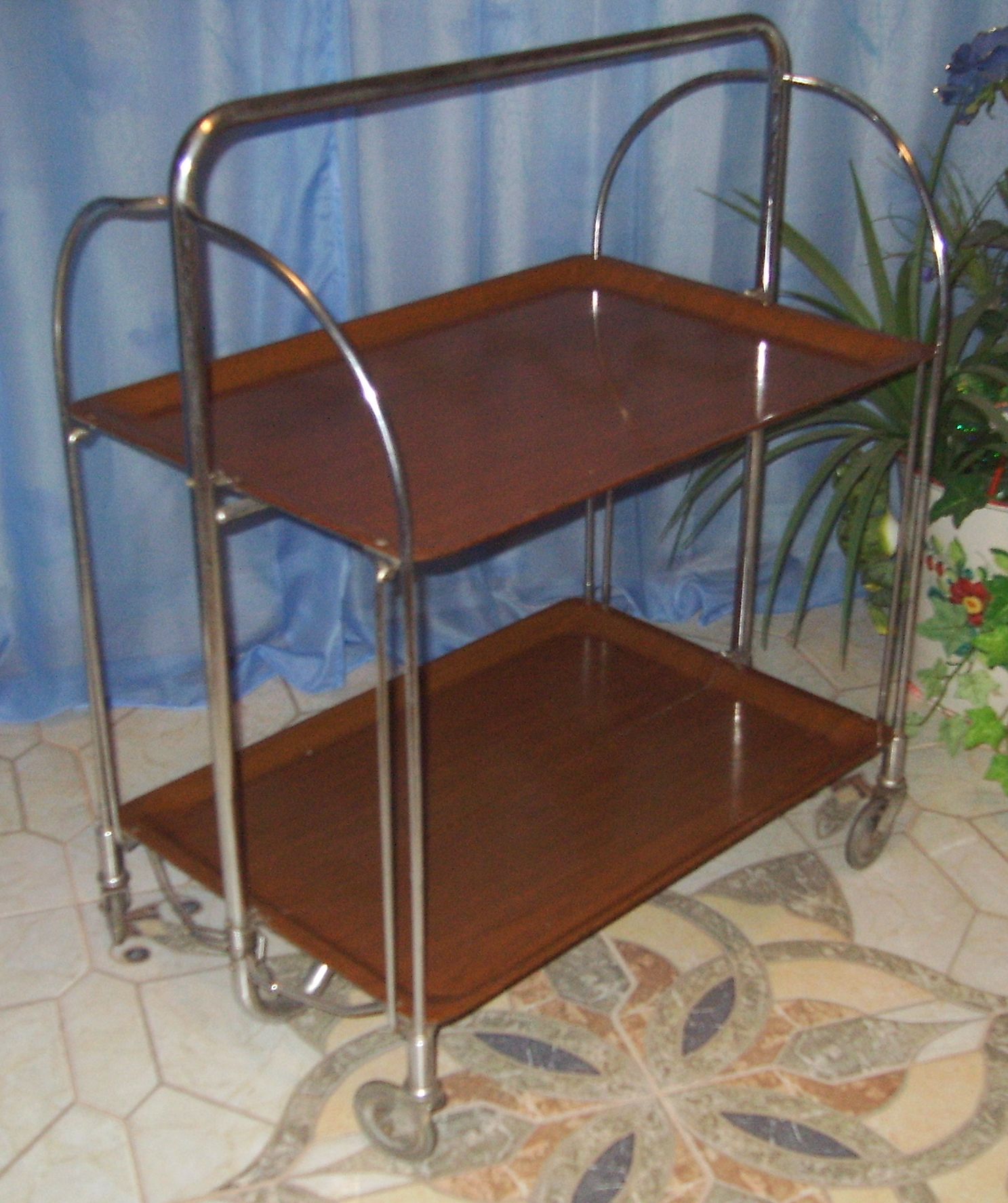 Передвижные столы-подносы появились в средние века. Их предшественники — большие подносы и небольшие столовые этажерки, которые оснастили колёсиками, чтобы слугам было удобно перемещать тяжёлую посуду и большое количество блюд между кухней и столовой[3]. Так появились первые передвижные сервировочные столы, которые со временем стали отдельным видом столовой мебели.