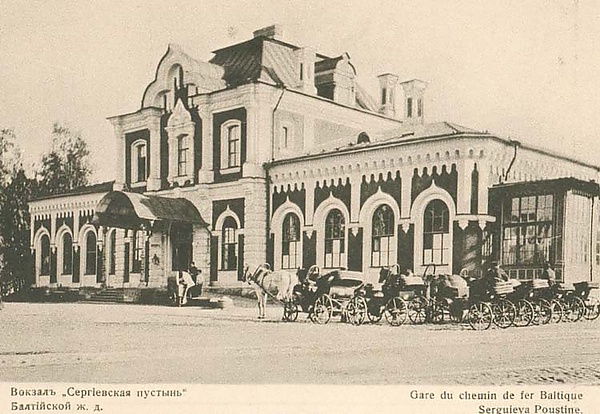 - Здание вокзала станции Сергиево XIX в. (на консервации). Арх. Бенуа Н. Л., постр. 1855-1857 гг., в русском стиле.