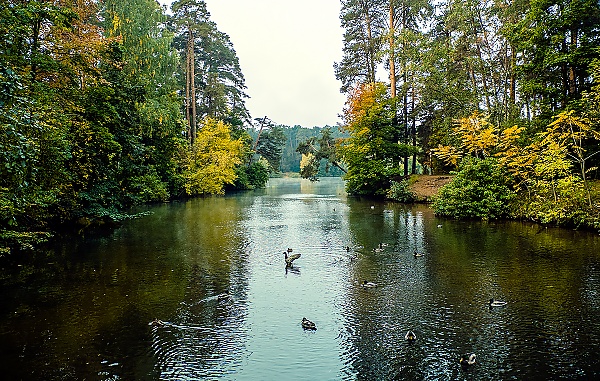 Летом здесь было людно и весело, наезжало много дачников, молодёжи, на реке открывались лодочные станции и пляжи, с утра до вечера гулко стучал мяч на волейбольных площадках, — жизнь была увлекательной и лёгкой, похожей на кинофильм. <…> А потом начиналась осень, пустели дачи, в поле и в лесу почти не встречалось людей, да и те, кто встречался, были редкие огородники, торопящиеся на автобусный круг с мешком картошки за плечами. И плыла в воздухе нетревожимая паутина, просеки затоплялись жухлой листвой — её никто уже не убирал до снега, и далеко по реке разносилось одинокое гугуканье последнего катера с каким-нибудь случайным пассажиром, забившимся от холода в нижний салон