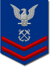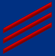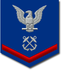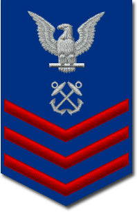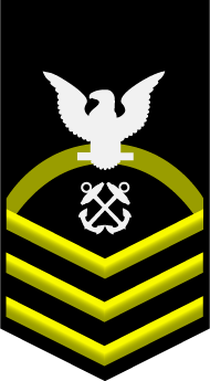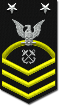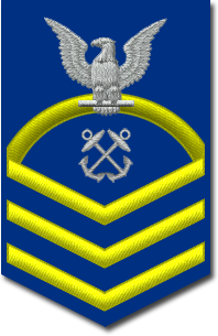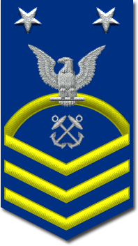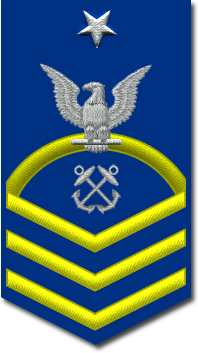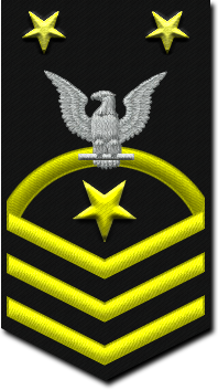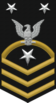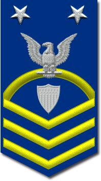 - Нашивка на рукаве. Знак различия представляет собой три шеврона над 3-мя дугами, в центре орел с большой печати США. Орел центрирован между 2-мя пятиконечными звёздами, звёзды центрированы горизонтально между шевронами и дугами[10].