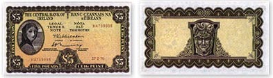 | £5 | 92 × 165 | Коричневый | река Лаган | 10 сентября 1928 | 5 сентября 1975 | |