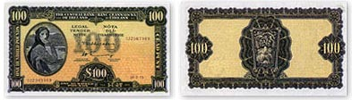 | £100 | 114 × 203 | Оливковый | река Шаннон и река Эрн | 10 сентября 1928 | 4 апреля 1977 |