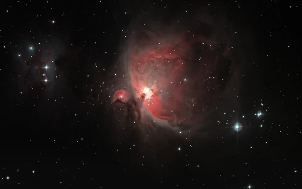 Видимые линии излучения водорода в серии Бальмера. Hα — красная линия справа, имеющая длину волны 656,3 нм.