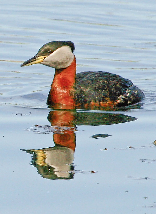 Выделяют два подвида, имеющих незначительные различия в размере; оба представлены на территории России. Подвид P. g. holboellii крупнее номинативного P. g. grisegena: его длина 43—56 см, размах крыльев 61—88 см, масса 750—1600 г[11]. Отличия в окрасе оперения не выражены, но у holboellii жёлтое основание занимает большую площадь клюва. Кроме того, разница в размерах между самцами и самками этого подвида более значительная, чем у P. g. grisegena[12].
