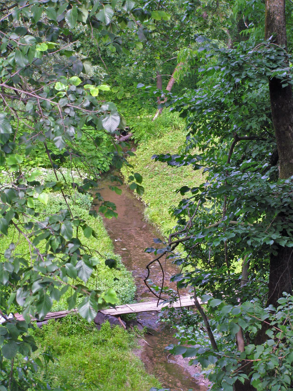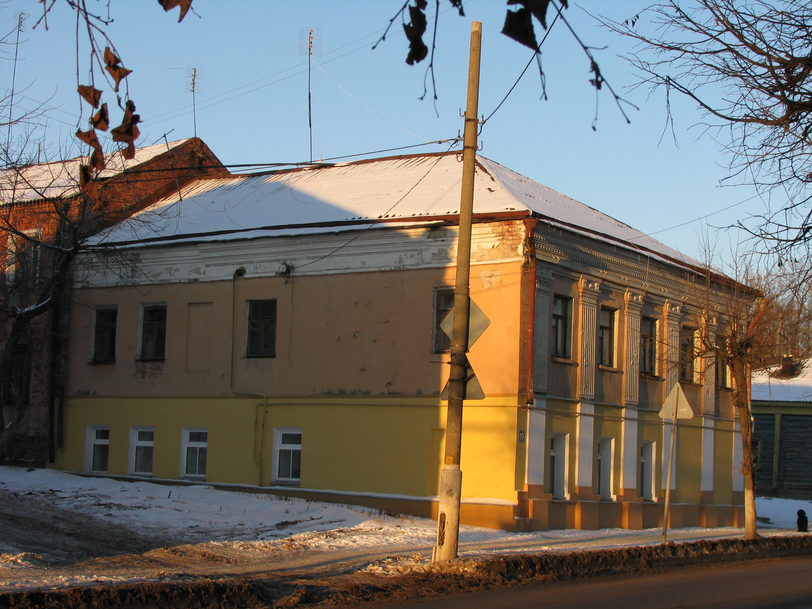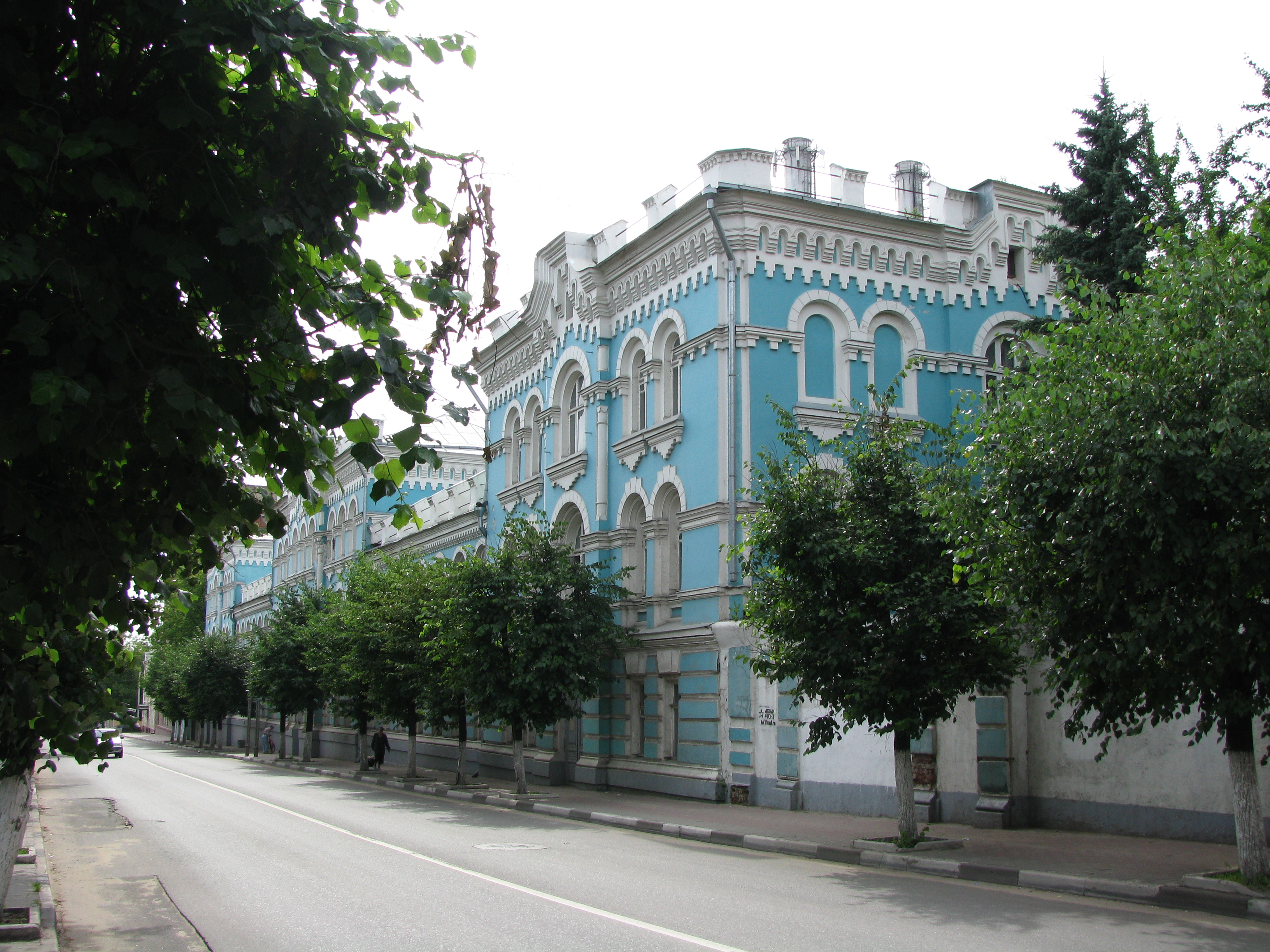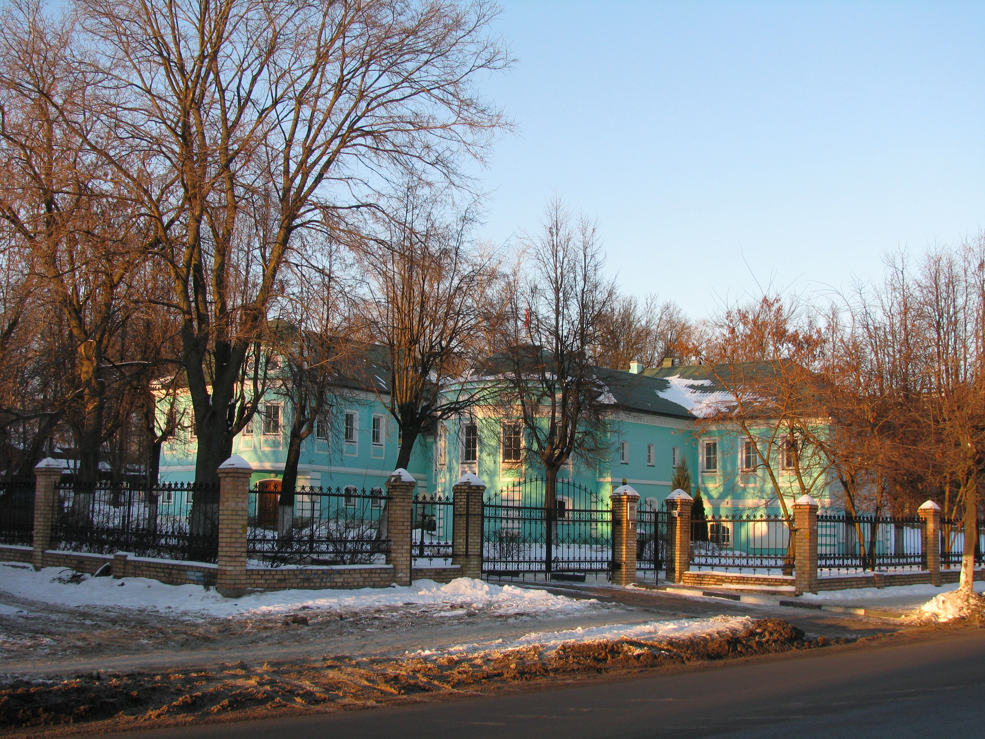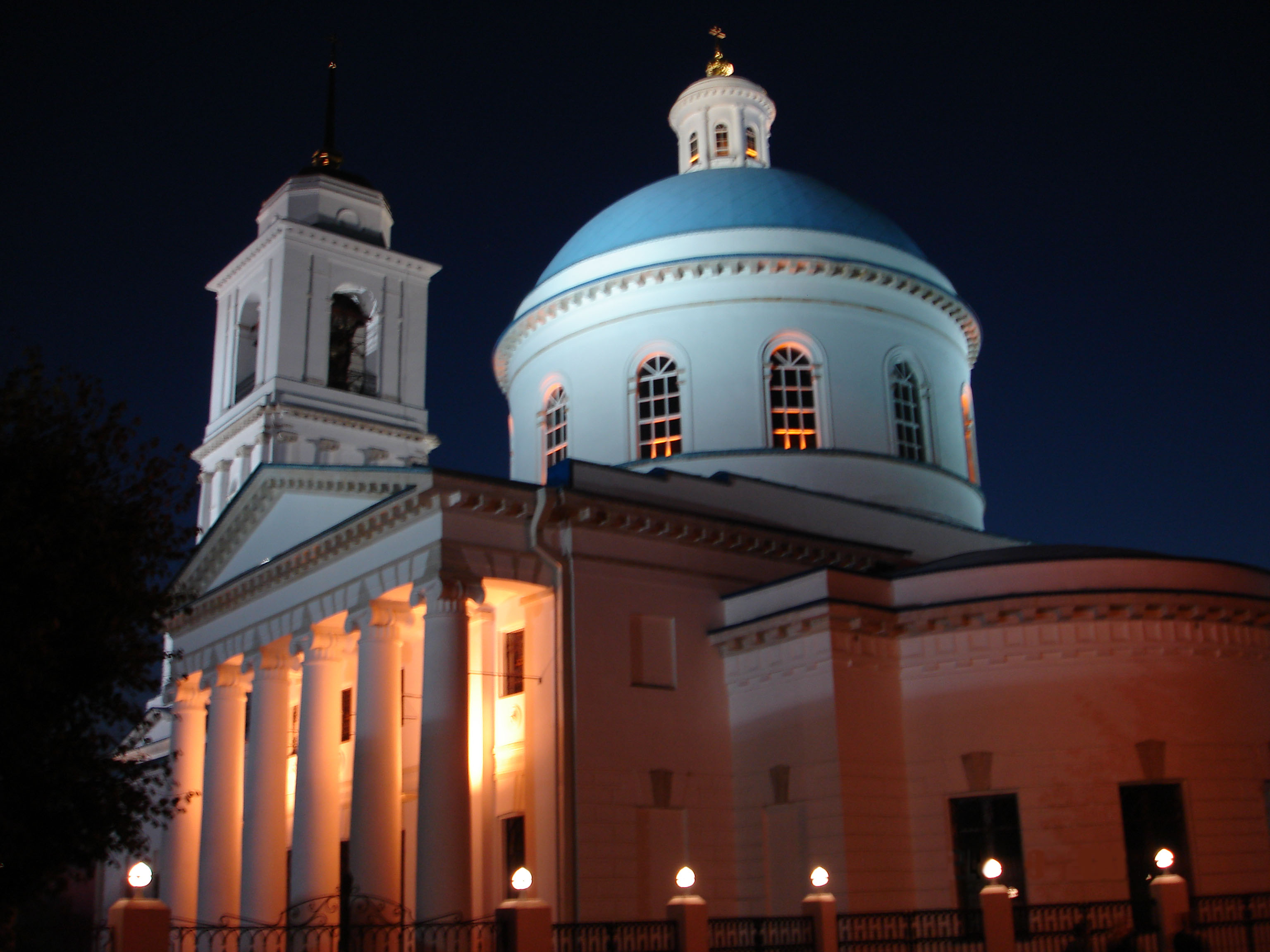 Весь он, будучи построен по изгибистому и неровному косогору, представлял некоторый род красивого амфитеатра, и белеющееся в разных местах остроконечные верхи колоколен с блестящими их златыми крестами придавали ему отменную красу.