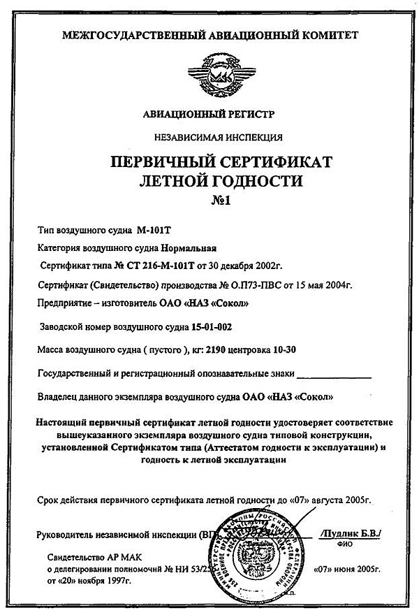 Специалистами МТУ Росавиации проводится проверка предоставленной документации, оценка соответствия воздушного судна лётной годности завершается контрольным облётом[8].